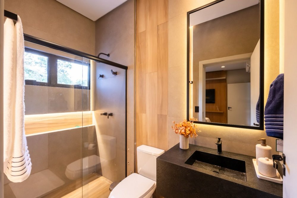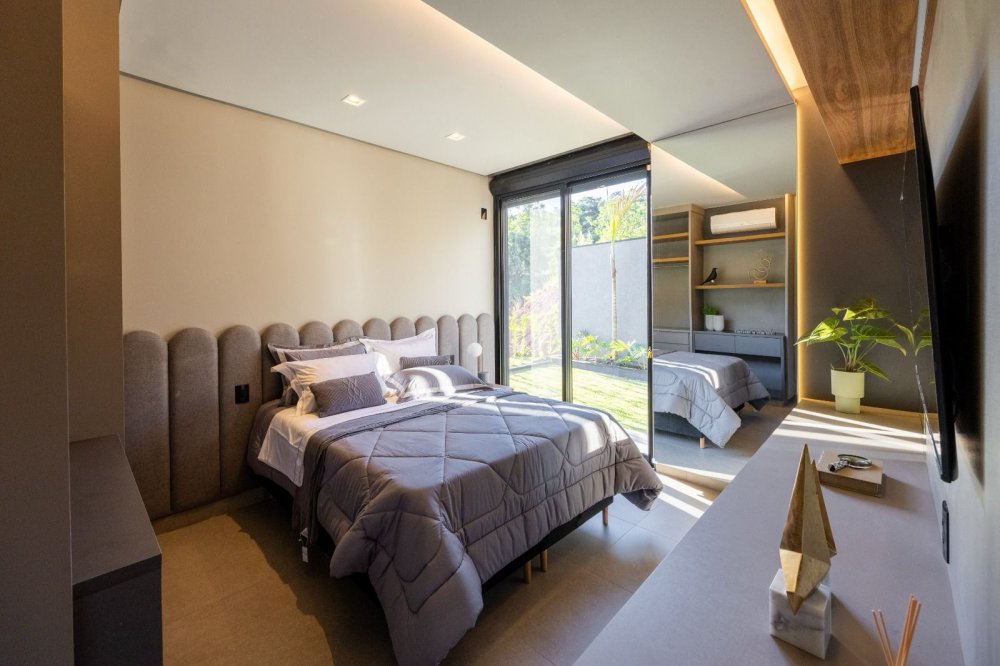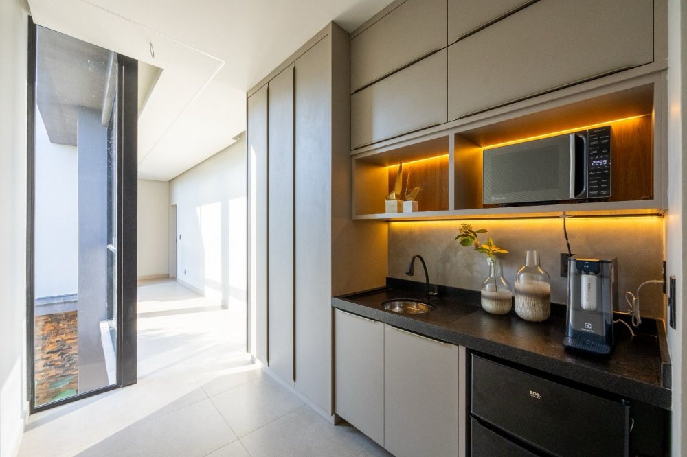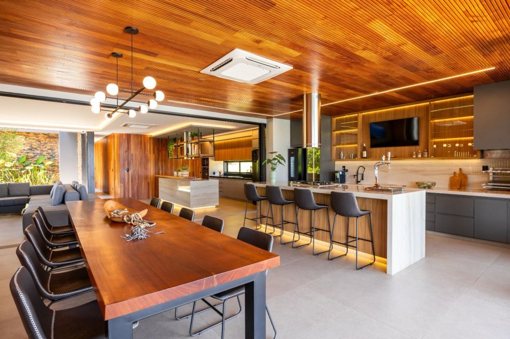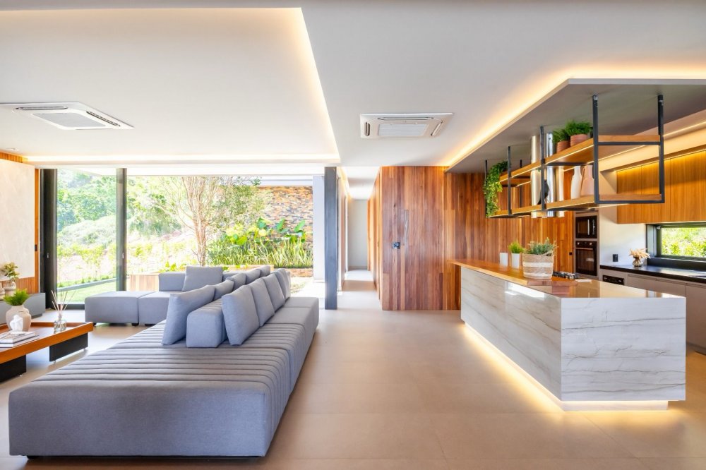 Equipada com automação, energia fotovoltaica e sistema de monitoramento, a casa oferece também ar-condicionado cassete, cozinha de apoio e revestimentos de alta qualidade. Com design contemporâneo e total mobília, esta residência proporciona uma experiência de luxo e conforto incomparável.