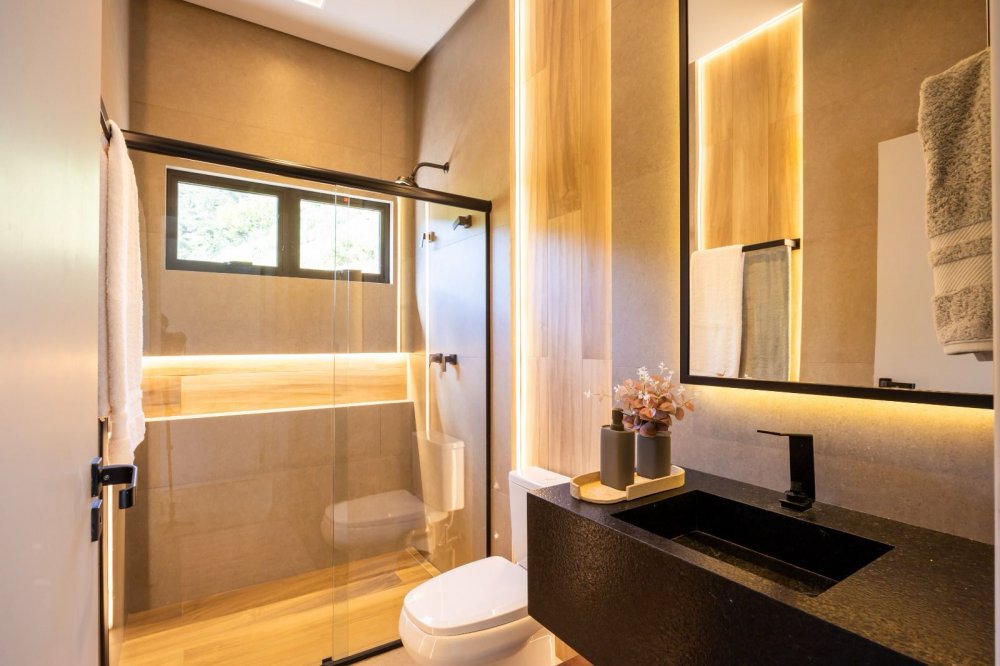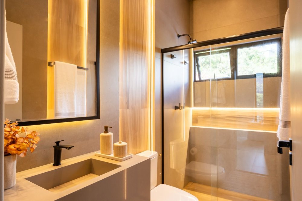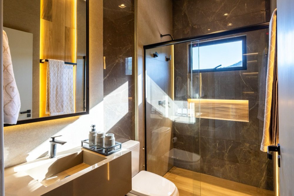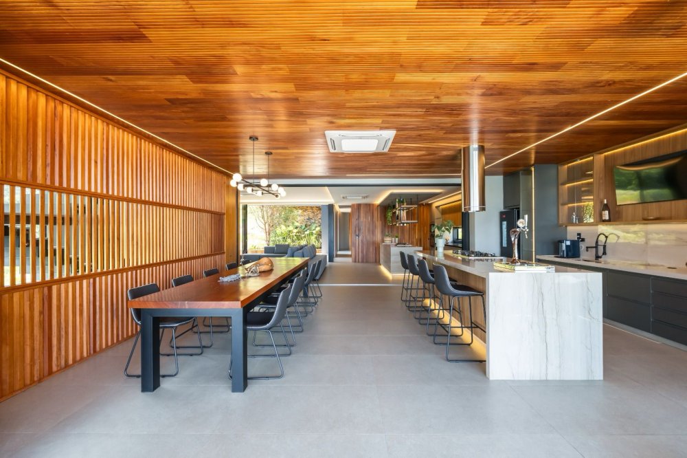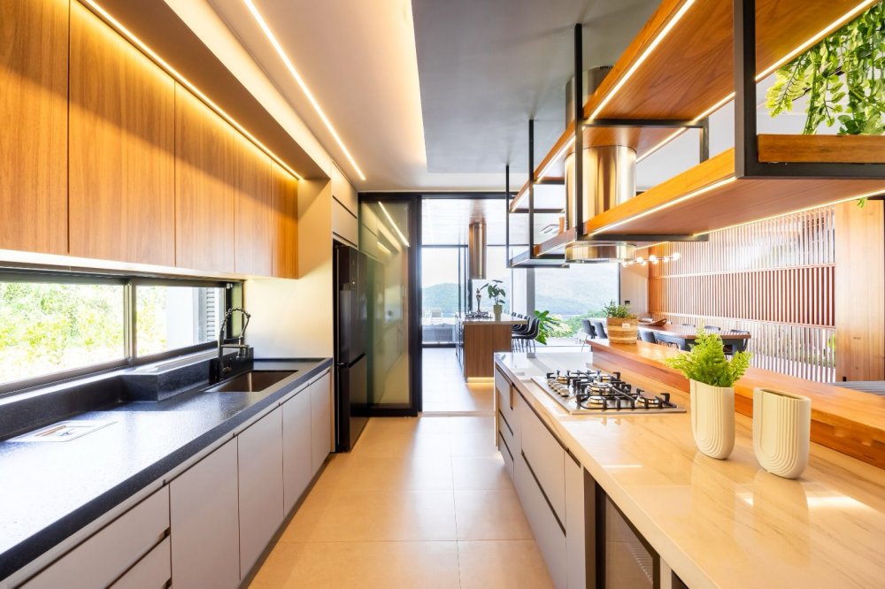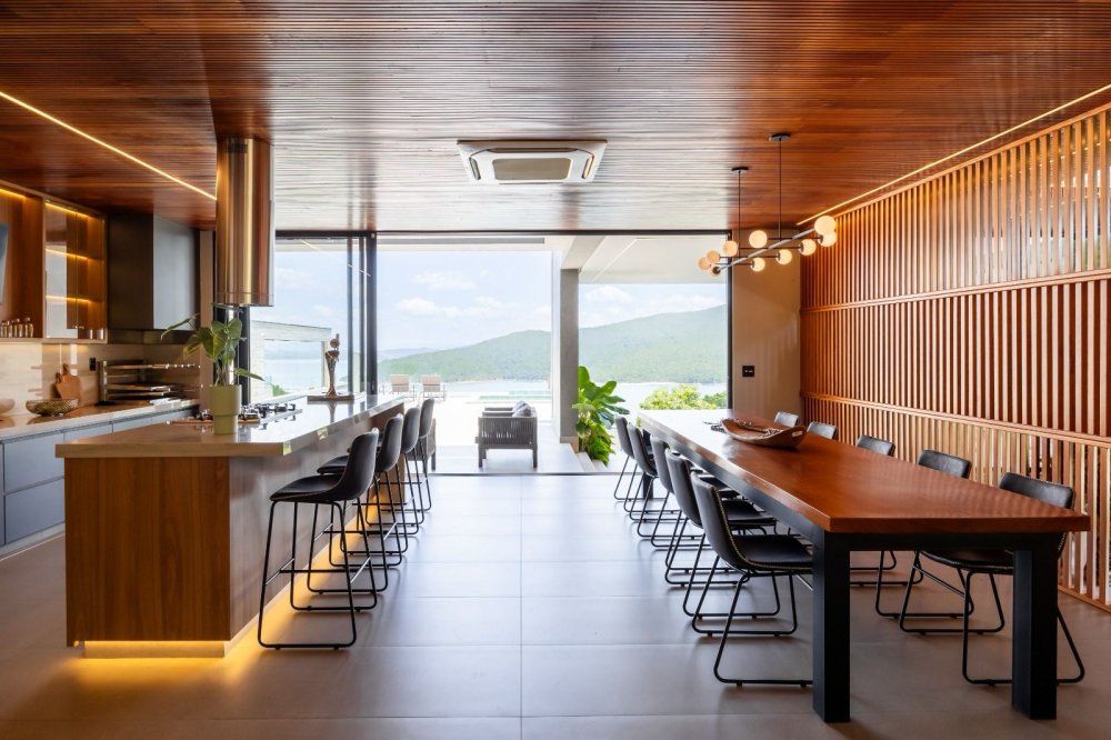 Equipada com automação, energia fotovoltaica e sistema de monitoramento, a casa oferece também ar-condicionado cassete, cozinha de apoio e revestimentos de alta qualidade. Com design contemporâneo e total mobília, esta residência proporciona uma experiência de luxo e conforto incomparável.