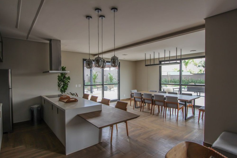 Com 4 suítes espaçosas, oferece o equilíbrio ideal entre privacidade e conforto para toda a família. A sala com dois ambientes integra perfeitamente o convívio social, enquanto a cozinha funcional e moderna, conectada à sala de almoço, convida a momentos especiais com muito mais praticidade e charme.