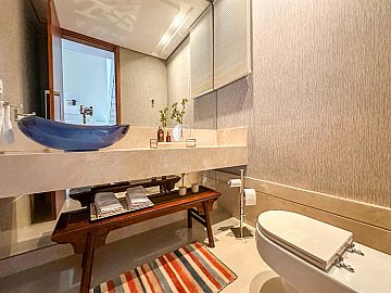 Na área íntima, a casa dispõe de 4 suítes amplas e muito bem equipadas, todas com excelente padrão de acabamento. A suíte master se destaca pelo conforto superior, com closet espaçoso e banheiro elegante com banheira, oferecendo uma verdadeira experiência de spa dentro de casa.