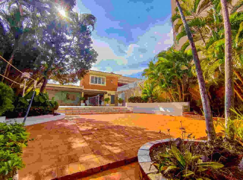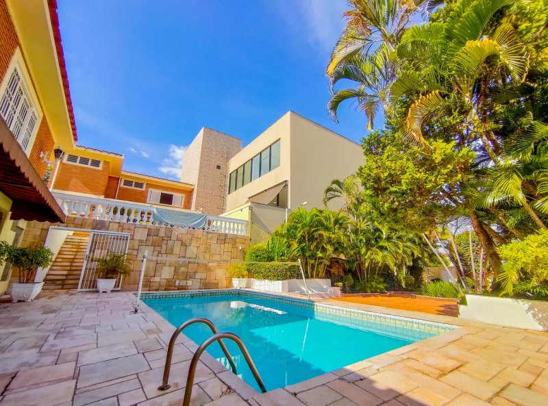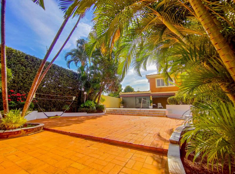 Ao lado da piscina, a casa conta com uma praça privativa, muito arborizada.